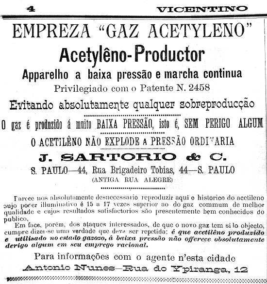 Empresa Gaz Acetyleno - Acetylêno-Productor - J. Sartorio & C./Antonio Nunes