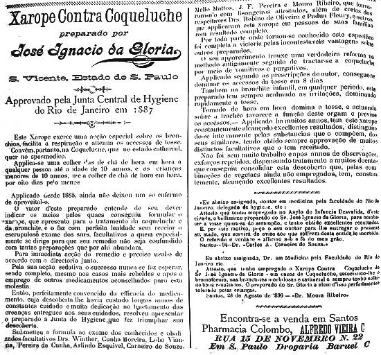 Xarope Contra Coqueluche, preparado por José Ignacio da Gloria - editor do jornal Vicentino