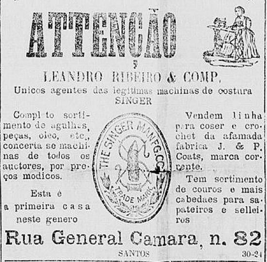 Leandro Ribeiro & Comp., agentes das máquinas de costura Singer