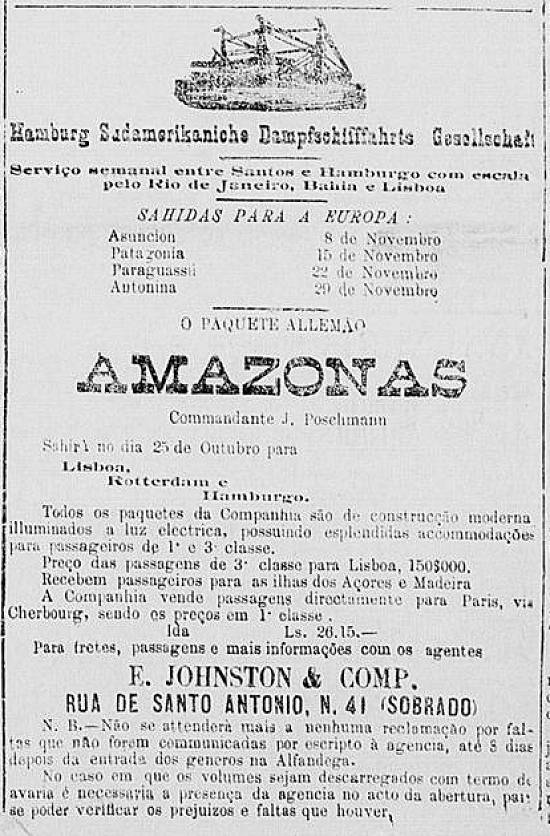 Hamburg-Sudamerikanische Dampfschifffahrts Geselschaft - agentes E. Johnston & Comp.