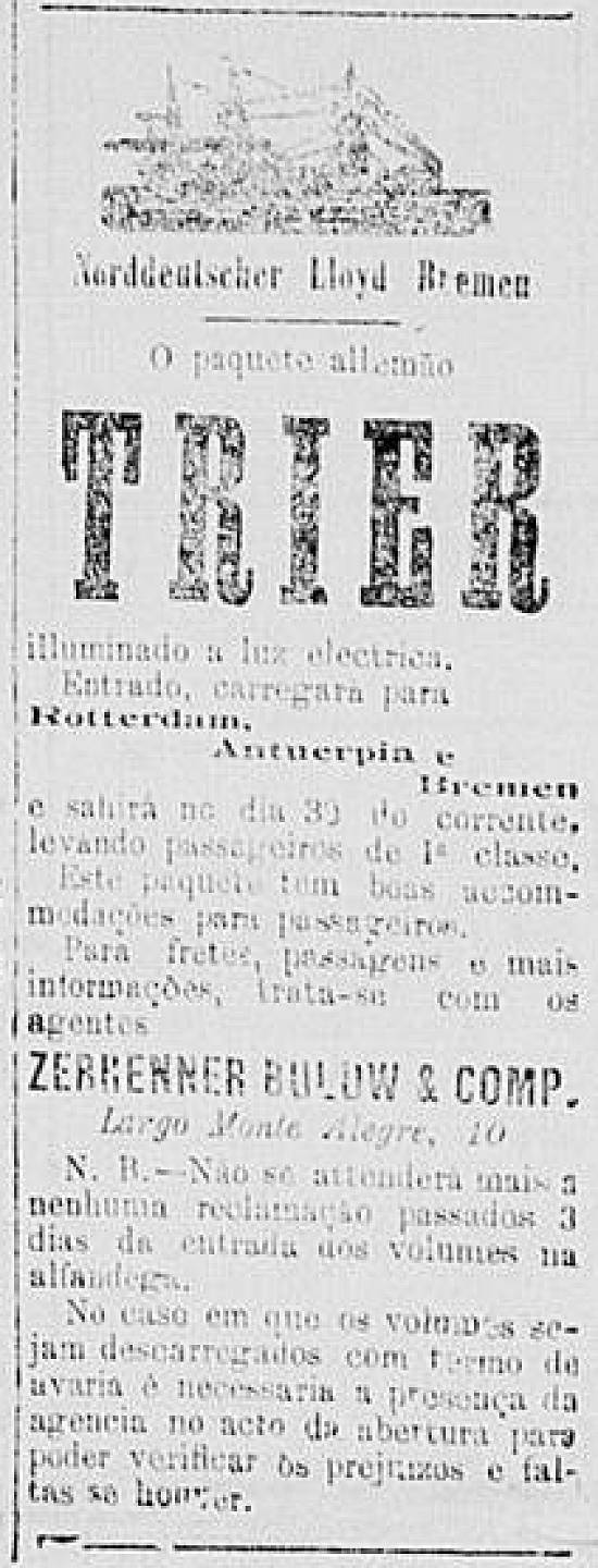 Norddeutscher Lloyd Bremen - agentes Zerrenner Bulow & Comp.