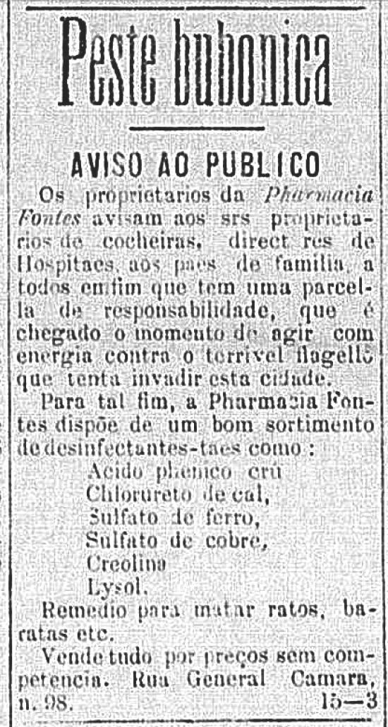 Peste bubônica - Pharmacia Fontes - "Vende tudo por preços sem competência"