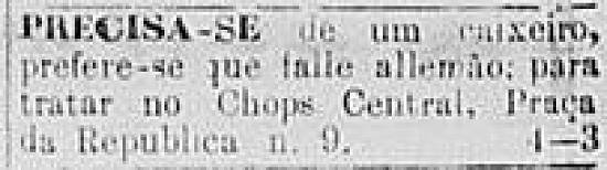 Precisa-se de caixeiro que fale alemão, no Chops Central
