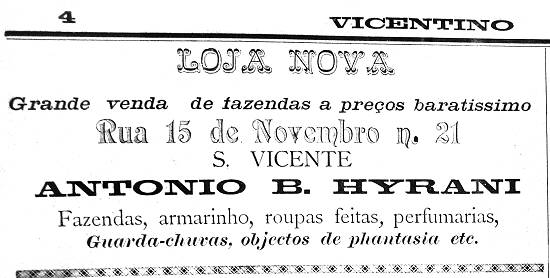 Publicado no jornal Vicentino - Ano II, nº 22, de S.Vicente/SP, 21 de janeiro de 1900, página 4