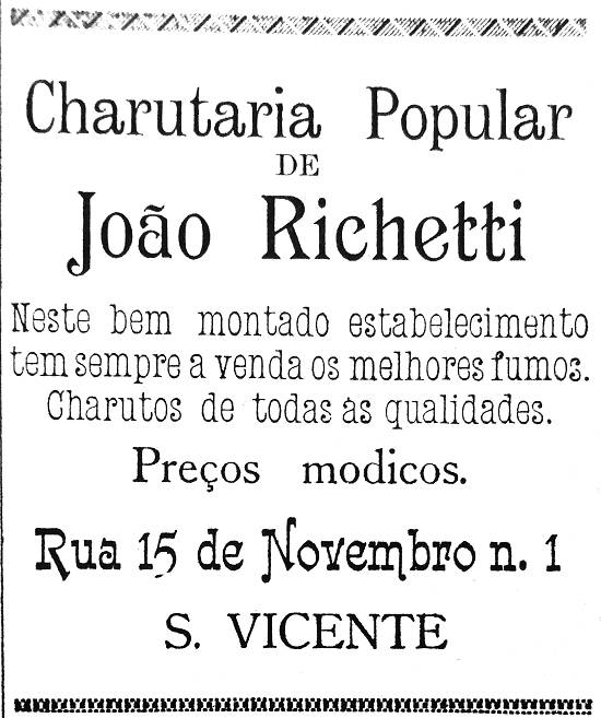 Publicado no jornal diário Cidade de Santos, em 28 de julho de 1900