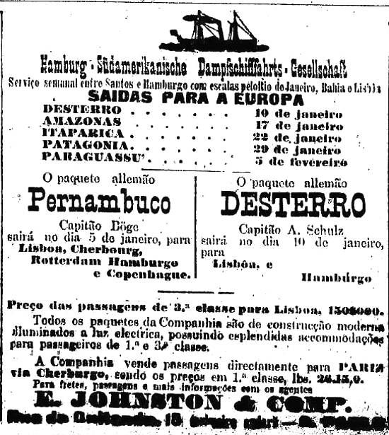 E. Johnston & Comp. - agentes de Hamburg Sudamerikanische Dampfschiffahrts Gesellschaft