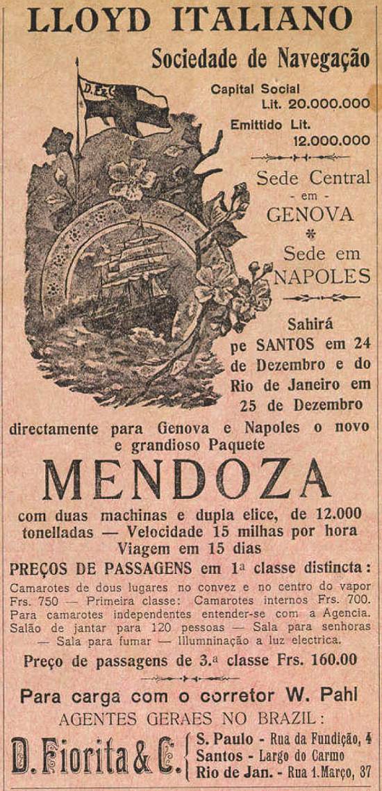 D. Fiorita & C.  - agentes em Santos da armadora Lloyd Italiano Sociedade de Navegação