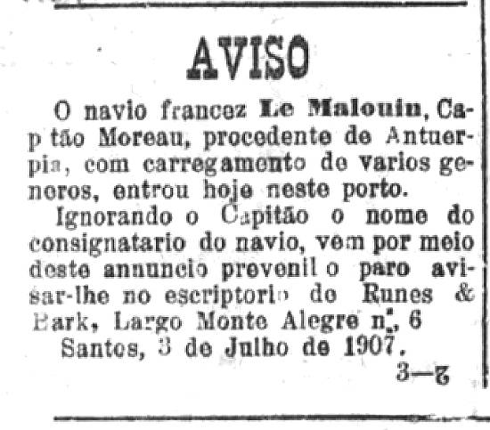 Publicado no jornal Diário de Santos, em 5 de julho de 1907,
