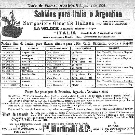 Vapor, Italia Sociedade de Navegação a Vapor - Flli. Martinelli & Cia.