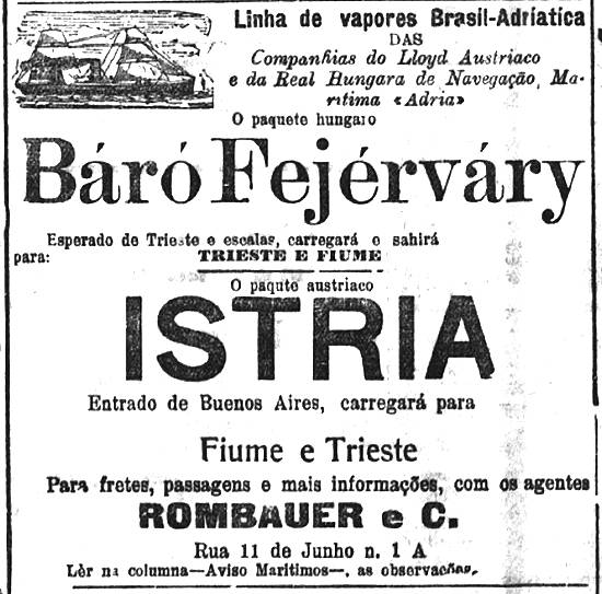 Lloyd Austriaco, Real Húngara de Navegação Maritima Adria - Rombauer e C.