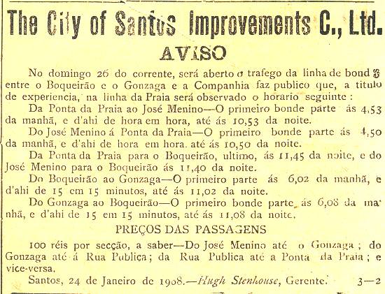 Publicado no jornal diário Cidade de Santos, em 25 de janeiro de 1908