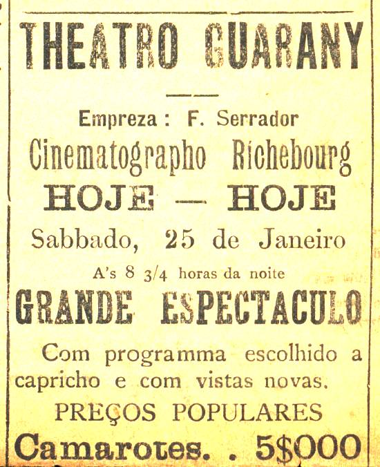 Teatro Guarany - Espetáculo de cinema iniciando às 8 3/4 horas da noite...