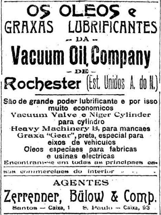 Zerrenner, Bülow & Comp. - Agentes da Vacuum Oil Company, de Rochester/EUA
