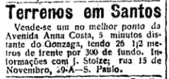 Terrenos à venda em Santos, na Avenida Anna Costa