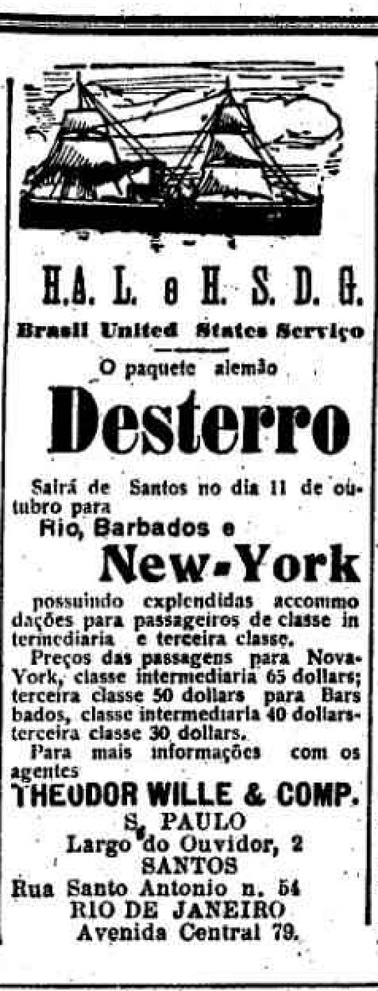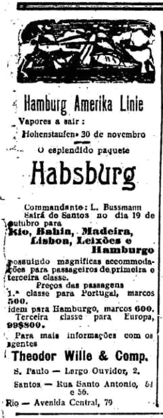 Theodor Wille & Comp. - agentes da armadora alemã Hamburg Amerika Linie e Hamburg Sudamerikanishe