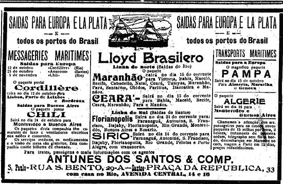 Antunes dos Santos & Comp. - agentes das armadoras Messageries Maritimes, Lloyd Brasileiro e