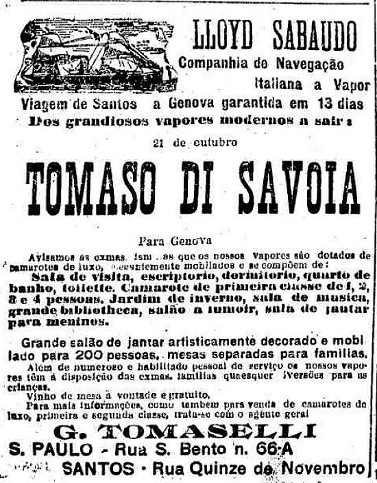 G. Tomaselli - agentes da armadora italiana Lloyd Sabaudo