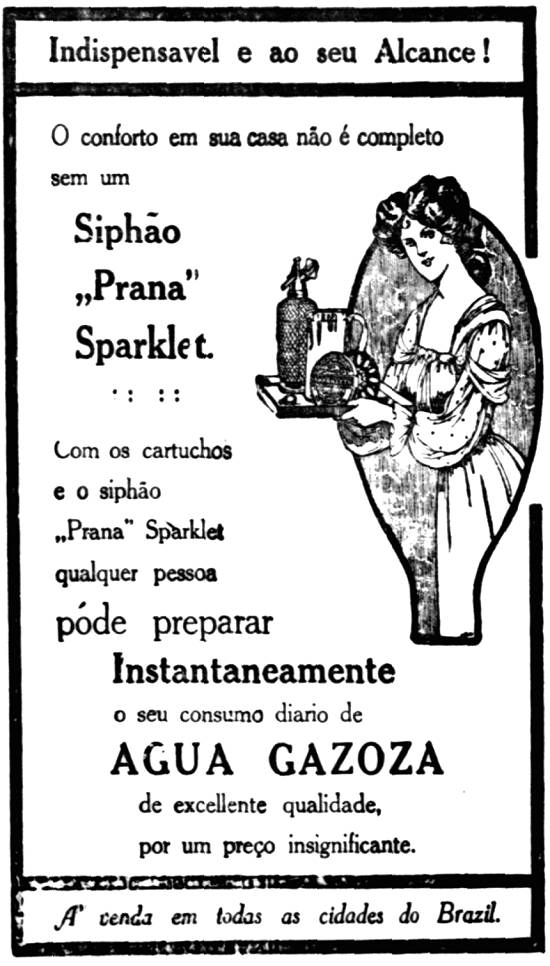 Sifão 'Prana' Sparklet, para produção de água gasosa, à venda em farmácias, drogarias e casas de bebidas