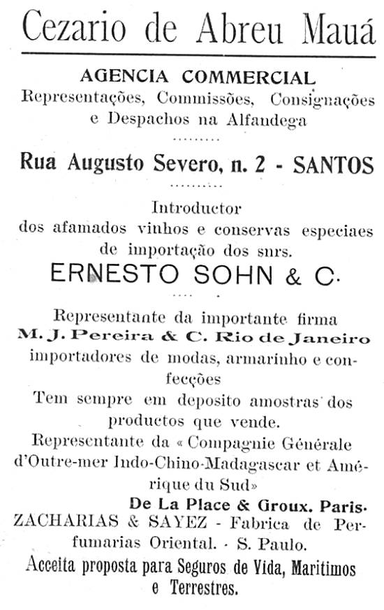 Cezario de Abreu Mauá - agência comercial, importadora, representações