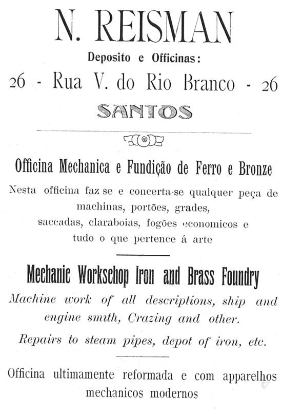 N. Reisman - oficina mecânica e fundição de ferro e bronze