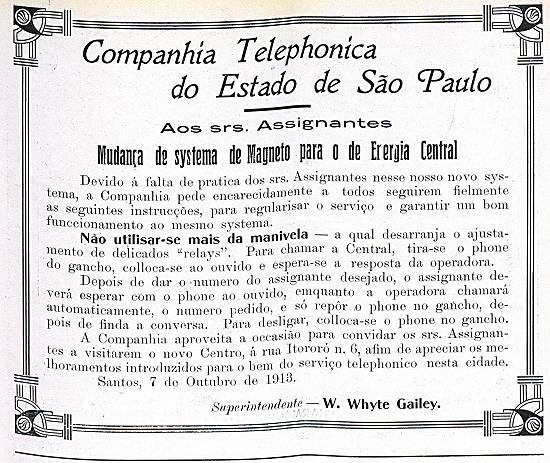 Companhia Telephonica do Estado de São Paulo - Mudança de sistema e magneto para o de energia central