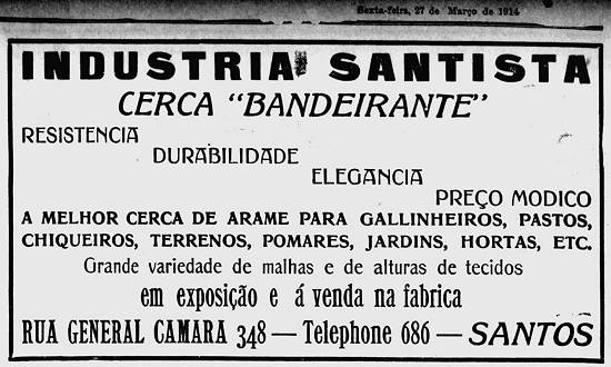 Indústria Santista "Cerca Bandeirante", para galinheiros, pastos, jardins, hortas etc.