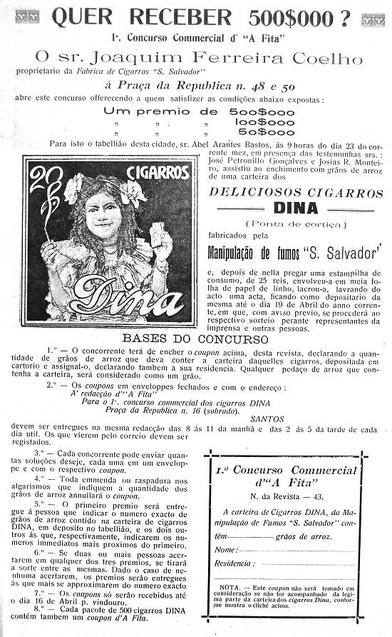Publicado na revista santista A Fita nº 43 (ano III), de 12 de fevereiro de 1914