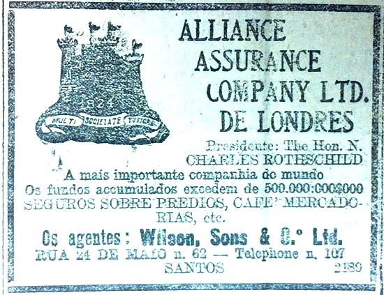 Alliance Assurance Company Ltd. de Londres - agentes em Santos: Wilson, Sons & Oº., Ltd.