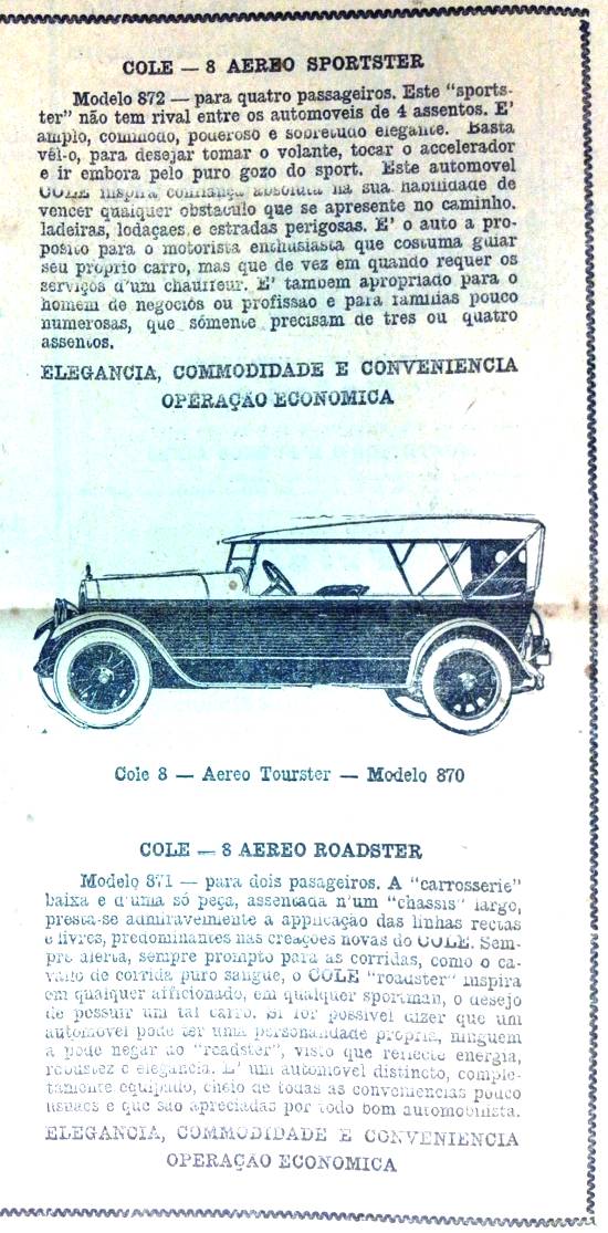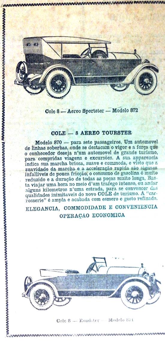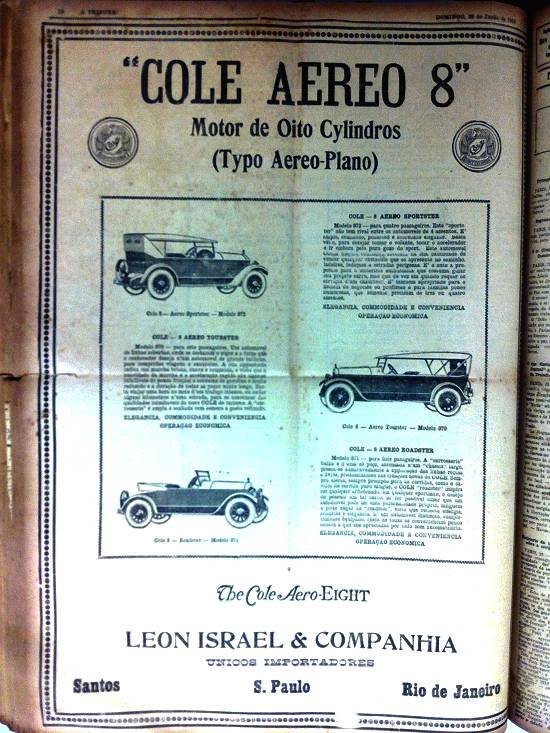 Automóvel 'Cole Aéreo 8' - importadores/Santos: Leon Israel & Companhia (página e detalhes)