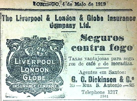 The Liverpool & Londo & Globe Insurance Co. Ltd. - agentes em Santos: G. G. Dickinson & Cº.