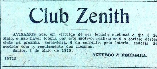 Publicado no jornal santista A Tribuna, em 4 de maio de 1919, página 7