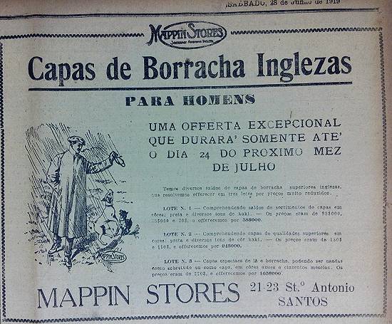 Capas de borracha inglesas para homens - Mappin Stores/Santos