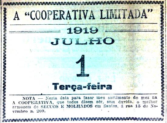 Publicado no jornal santista A Tribuna, em 28 de junho de 1919, página 7