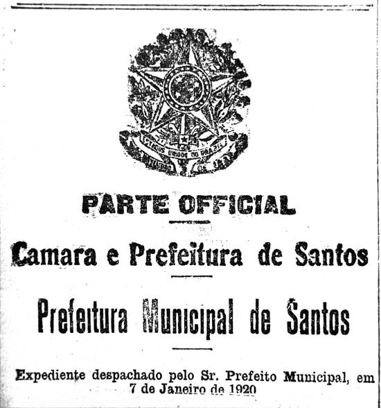 Publicado no jornal santista A Tribuna em 2 de janeiro de 1920