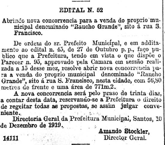 Publicado no jornal santista A Tribuna em 20 de janeiro de 1920