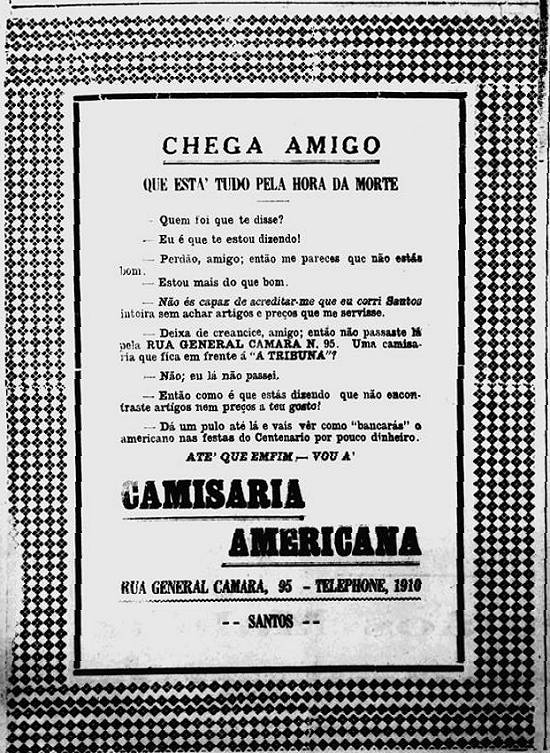 Publicado no jornal santista A Tribuna em 7 de setembro de 1922, pág. 22 Imagem: (Hemeroteca da Biblioteca Nacional - Rio de Janeiro/RJ