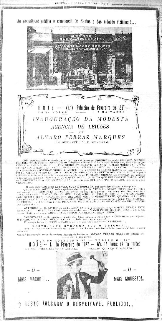 Publicado no jornal santista A Tribuna, em 1 de fevereiro de 1927, página 11
