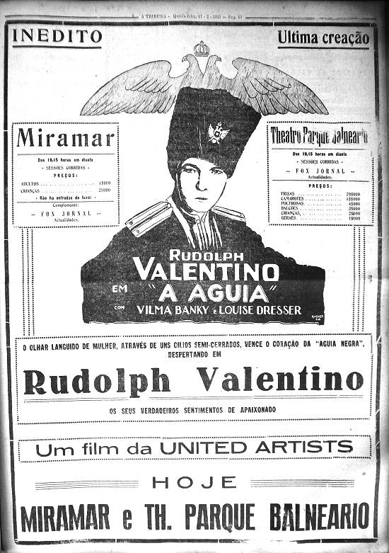 Rodolfo Valentino em "A Águia" - Cines Miramar e Teatro Parque Balneário