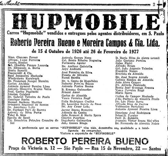 Roberto Pereira Bueno - concessionário dos carros Hupmobile. Lista de clientes