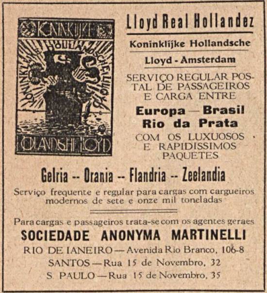 Lloyd Real Hollandez - agentes gerais em Santos, S. Paulo e Rio de Janeiro: Sociedade Anonyma Martinelli