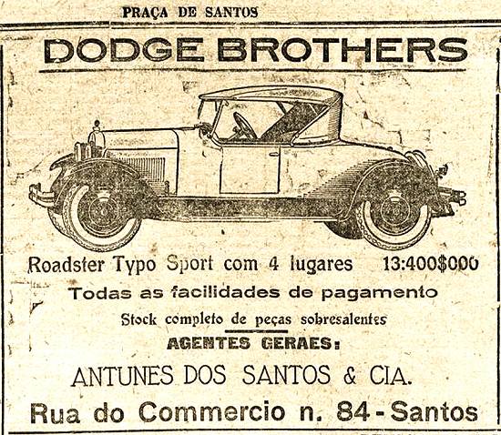 Dodge Brothers - carro Roadster Typo Sport com 4 lugares - agentes gerais: Antunes dos Santos & Cia.