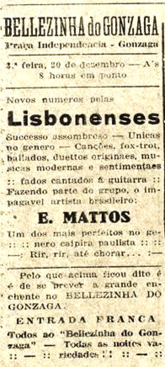 Publicado no jornal santista Praça de Santos, em 20 de dezembro de 1927, página 10