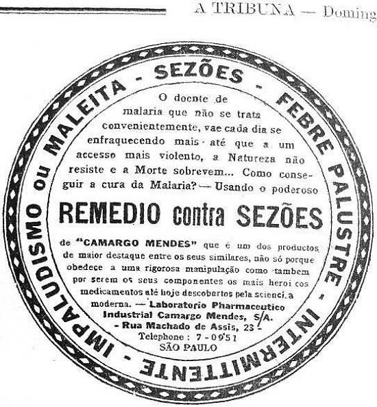 Remédio contra sezões - Laboratorio Pharmaceutico Industrial Camargo Mendes S/A - S.Paulo