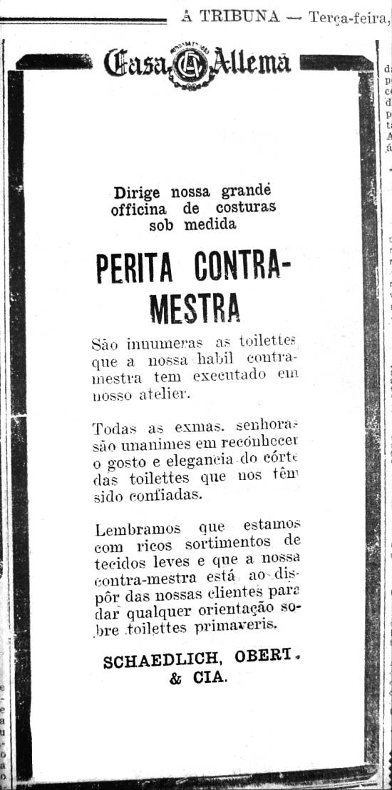 Casa Alemã - Schaedlich, Obert. & Cia. - contramestra para costuras