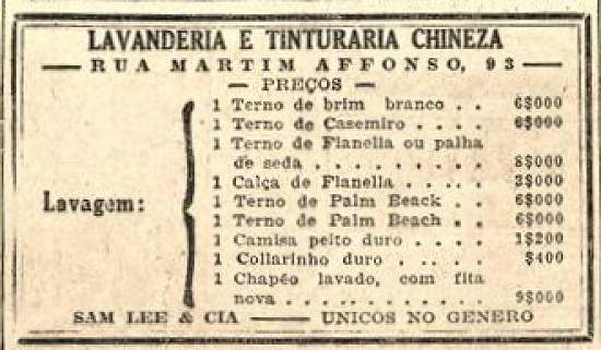 Lavanderia e Tinturaria Chineza - de Sam Lee & Cia.