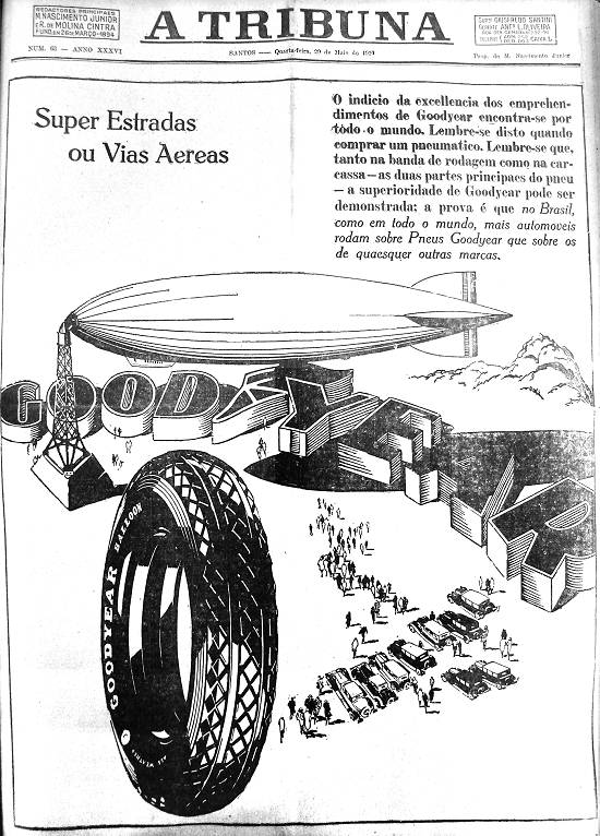 Publicado em toda a primeira página do jornal santista A Tribuna em 29 de maio de 1929