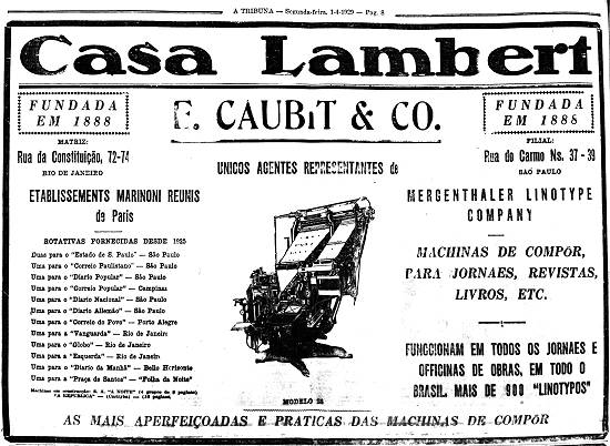 Casa Lambert (E. Caubit & Co.) - máquinas de compor Mergenthaler Linotype Co. (linotipos)