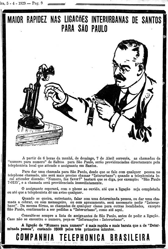 Companhia Telephonica Brasileira - Mais rapidez nas ligações interurbanas Santos/São Paulo