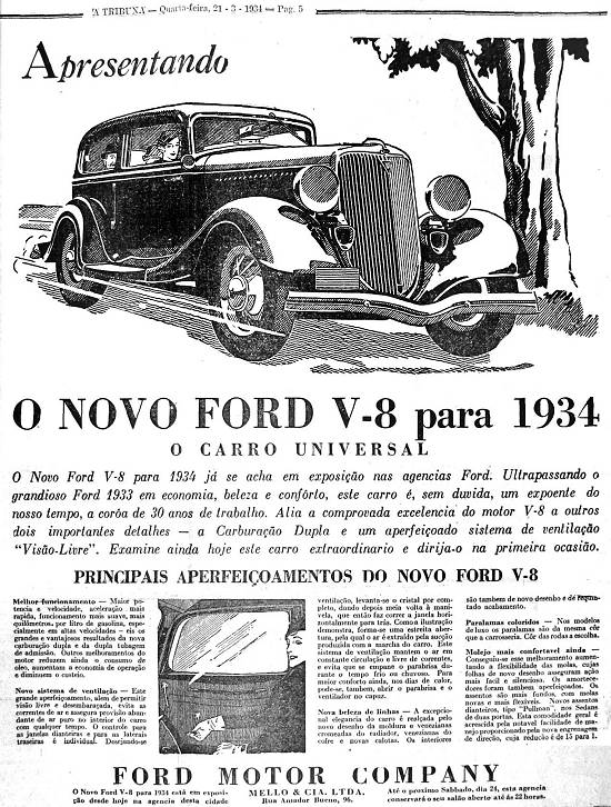 Mello & Cia. Ltda. - Ford Motor Company - Ford V8 para 1934 Publicado no jornal santista A Tribuna em 21 de março de 1934