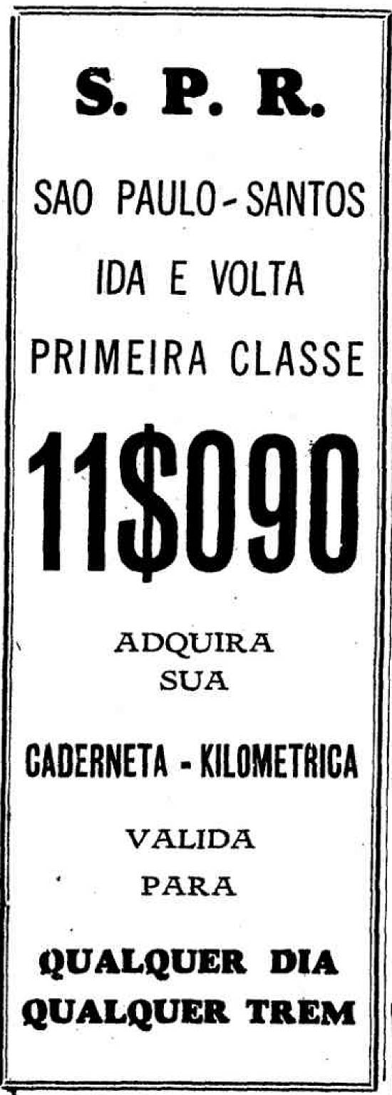 S. Paulo Railway - caderneta quilométrica de primeira classe São Paulo-Santos ida e volta